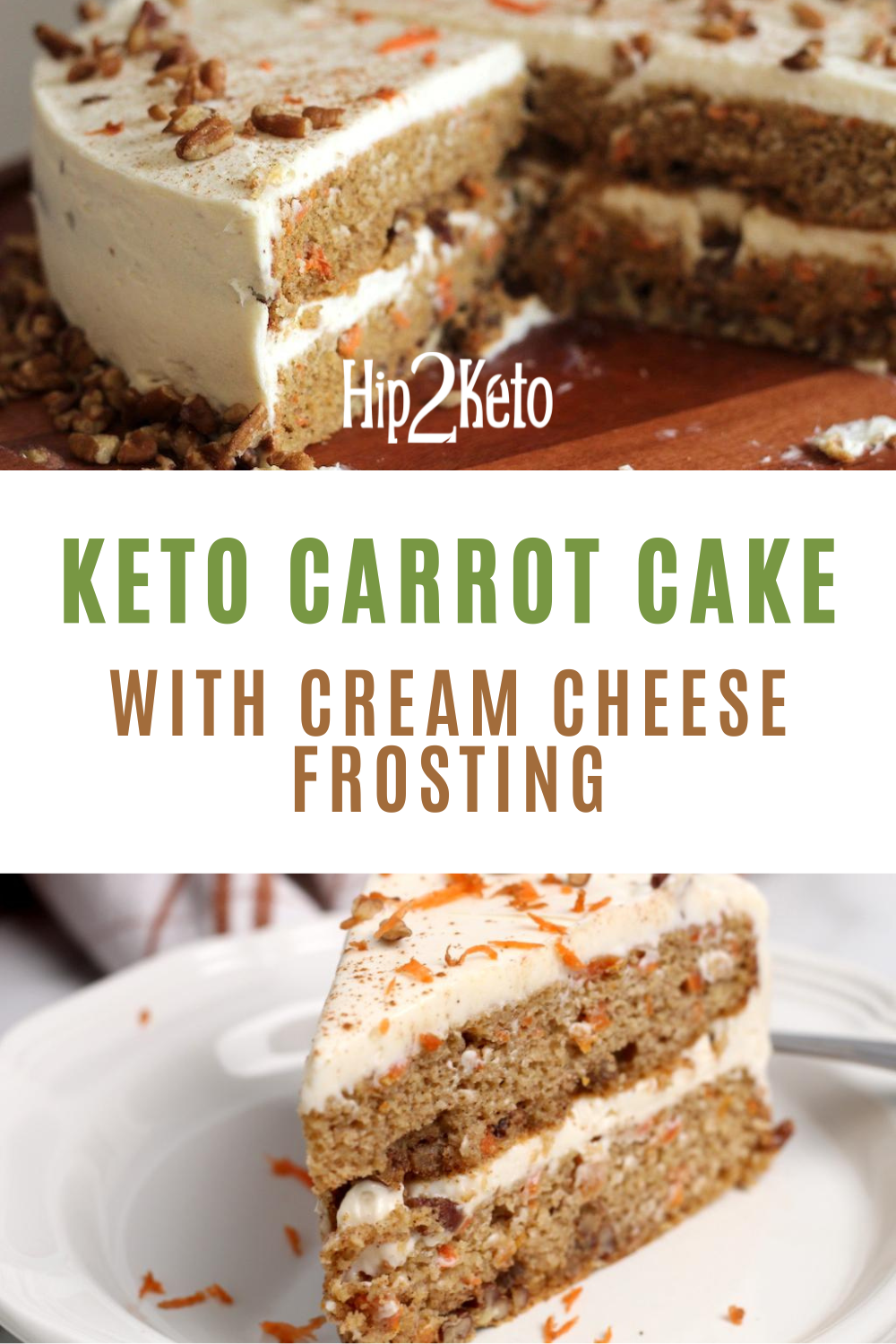 Got a hankering for sweet and savory carrot cake? This keto carrot cake recipe is so moist and is topped with our amazing keto cream cheese frosting and crushed pecans.