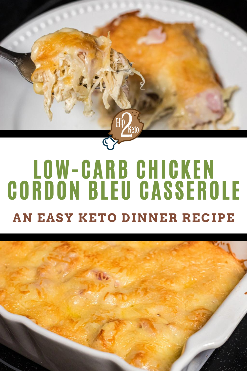 Delicious Chicken Cordon Bleu is converted into an easy weeknight keto casserole dish with layers of chicken, ham, and Swiss cheese.