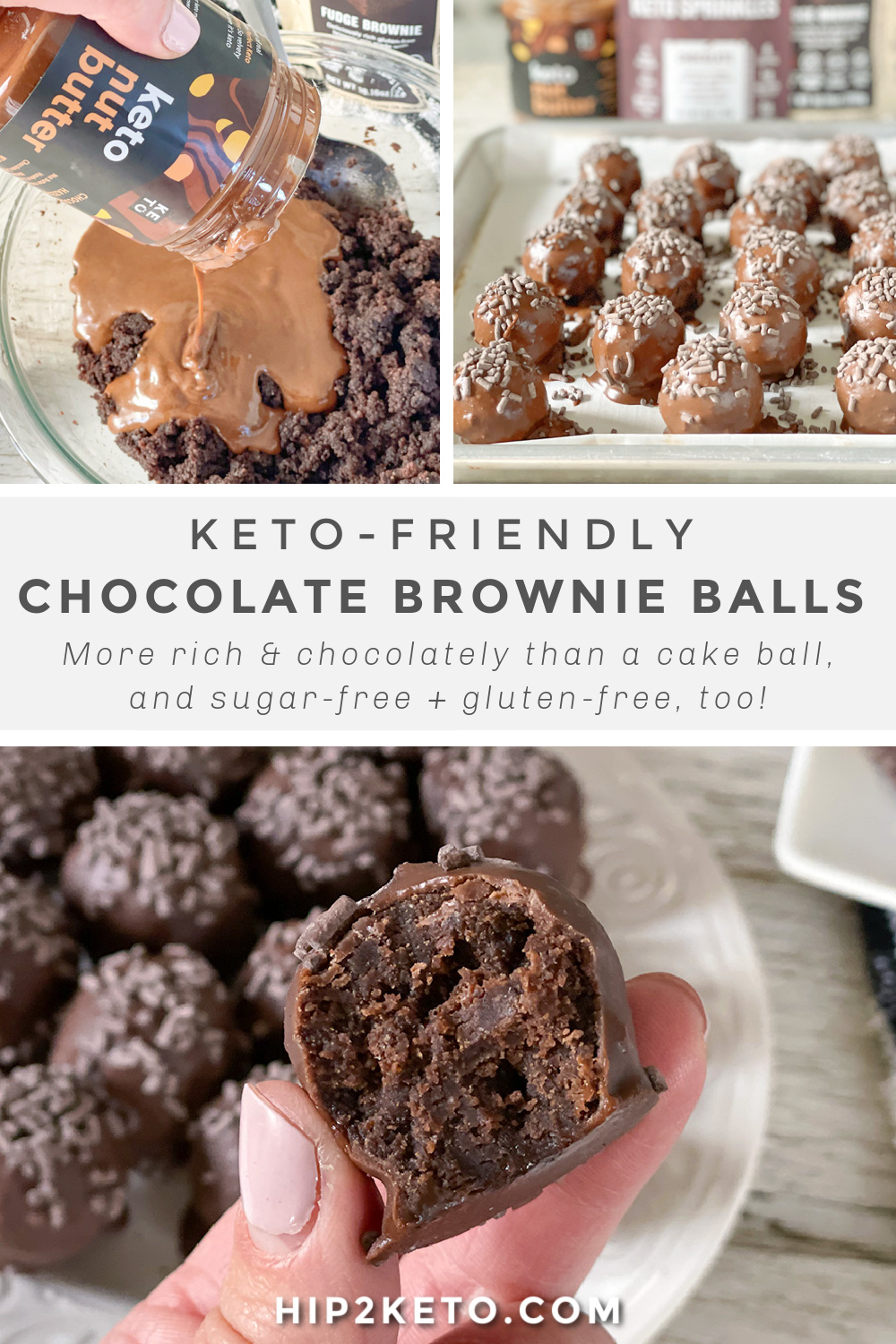 Brownie truffles made with keto brownie mix, keto nut butter, and topped off with sugar-free sprinkles.