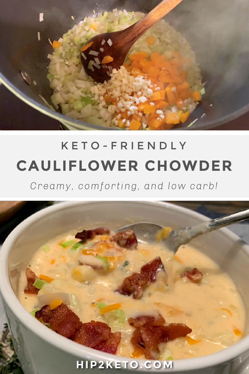 - If you have a non-meat-eater on your hands, you’re in luck, because you can easily convert this cauliflower chowder to a vegetarian dish by substituting butter for avocado oil, using veggie broth, and skipping the bacon topping. Easy-peasy!