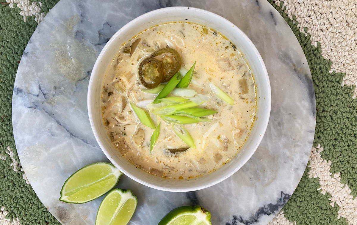 Once finished cooking, give the soup a final stir and salt and pepper to taste. Ladle into soup bowls, garnishing the soup with sliced green onion, pickled jalapeños, and remaining lime juice. Enjoy!