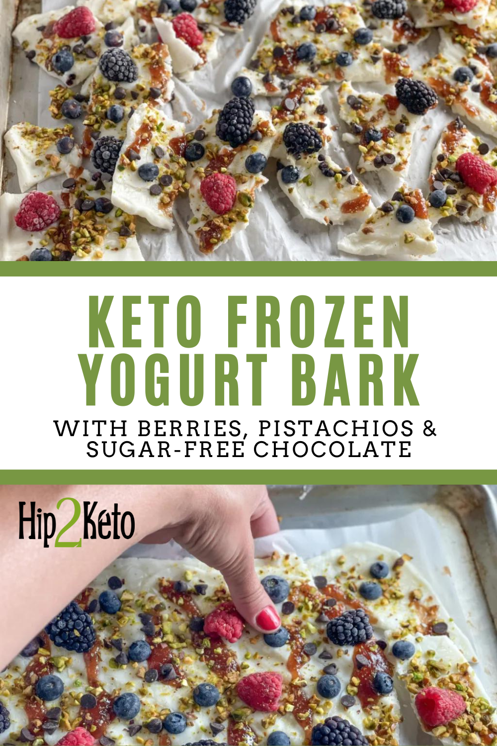 Keto Frozen Greek Yogurt Bark with Berries, Pistachios, & Keto Chocolate Chips