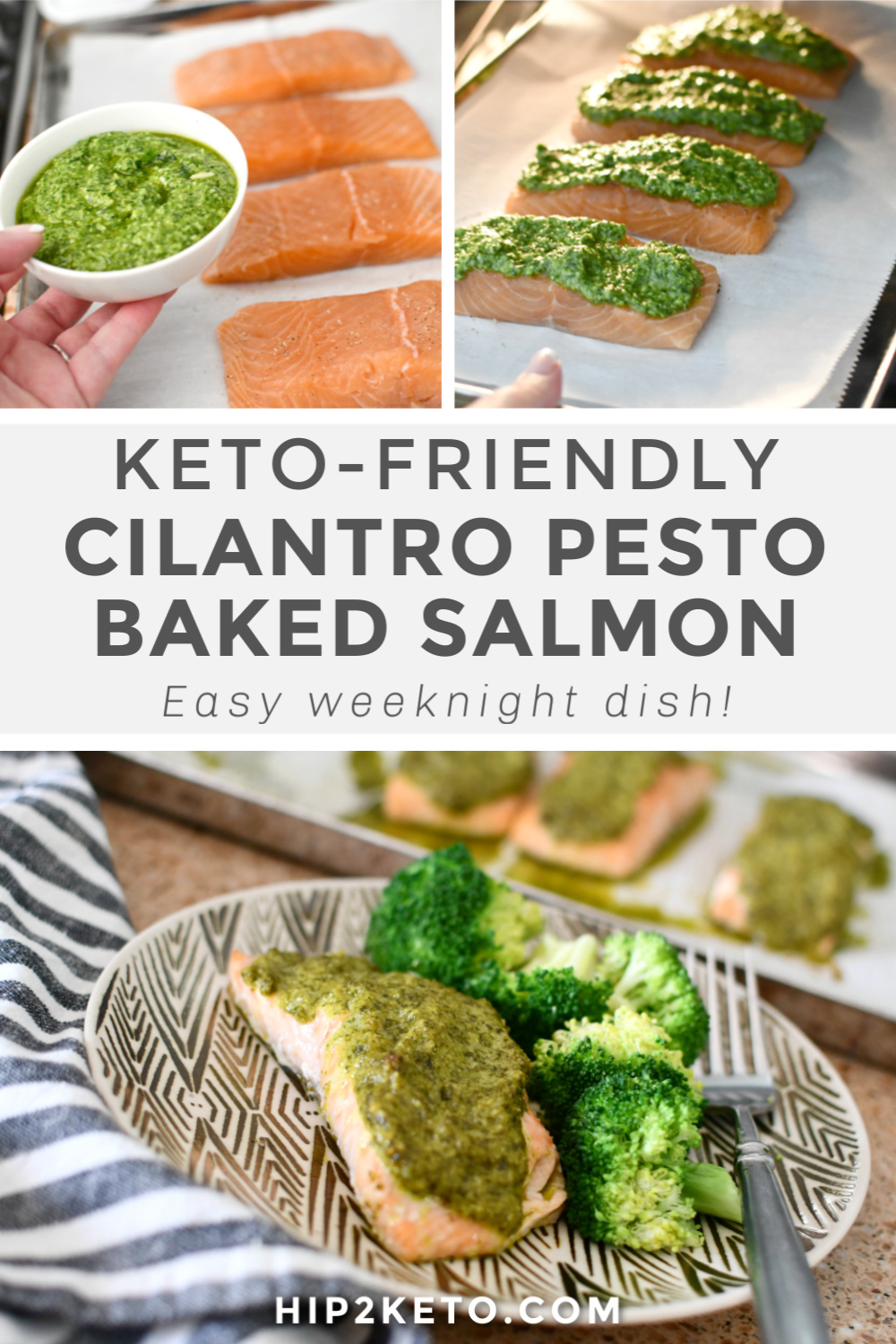 Whip up this brightly flavored cilantro pesto and then bake it over a piece of flaky salmon for an outstanding keto dinner all will love!