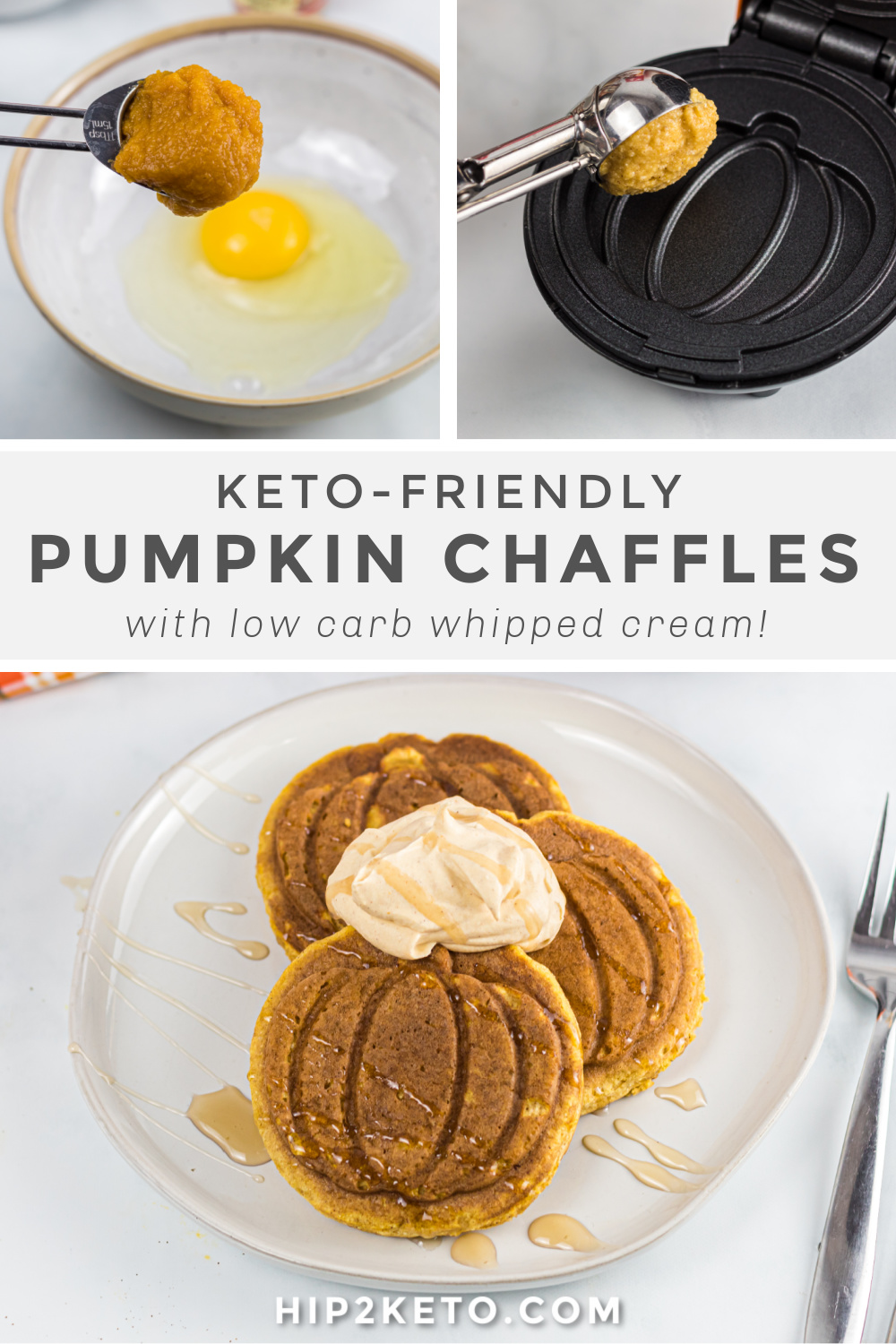 Serve your chaffles with 1-2 tablespoons of pumpkin whipped cream and/or sugar-free syrup. Enjoy!