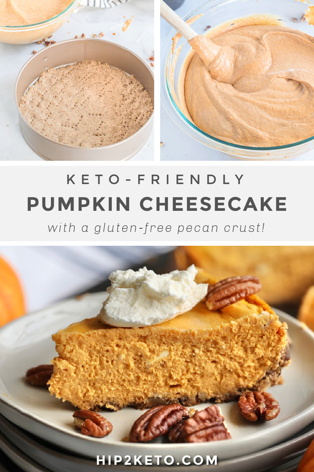 Made with a pecan almond flour crust and the most delicious keto pumpkin cheesecake filling.