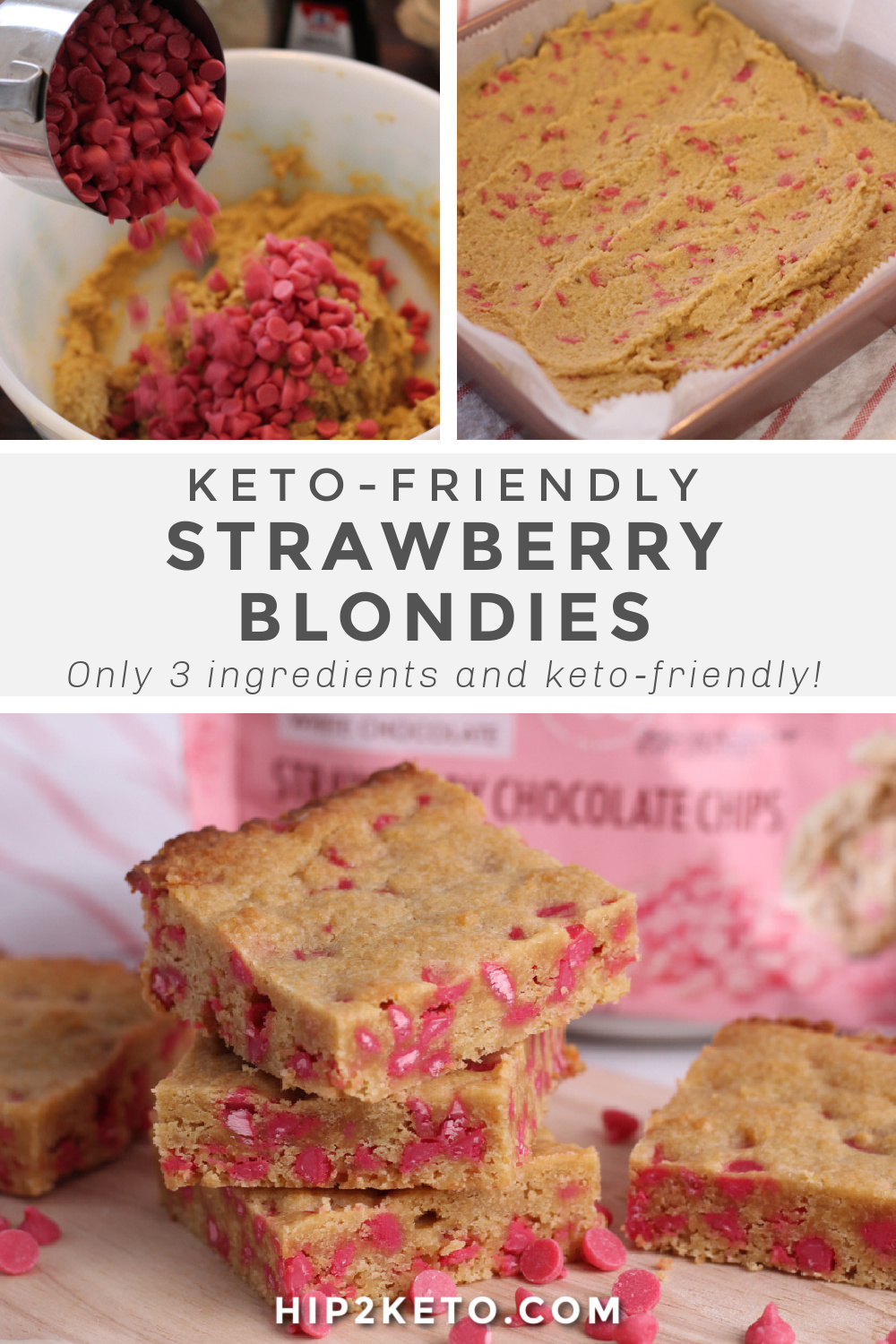Soft and chewy low-carb blondies get a fresh and fruity twist with the addition of new strawberry chocolate chips from ChocZero!