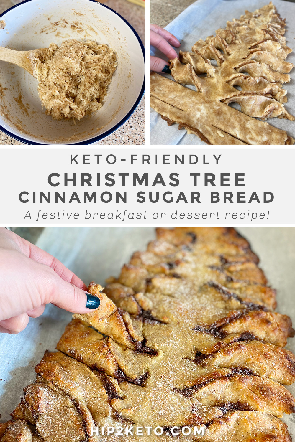 A festive Christmas tree-shaped bread made from our easy keto dough and a sweet cinnamon sugar filling.