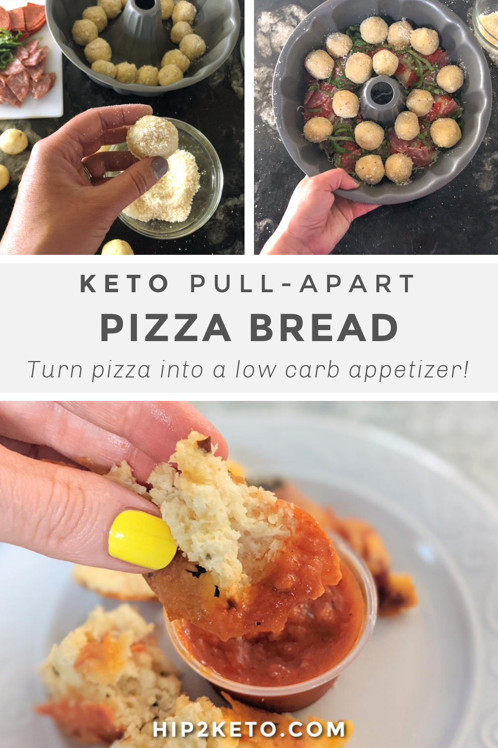 The process of making the pull-apart keto pizza rolls is pretty easy and consists of making a quick fathead dough, rolling it into small balls, and then place the dough balls in a bundt pan with the toppings. When it’s done cooking, you’ll end up with heavenly bite-sized balls of pizza!