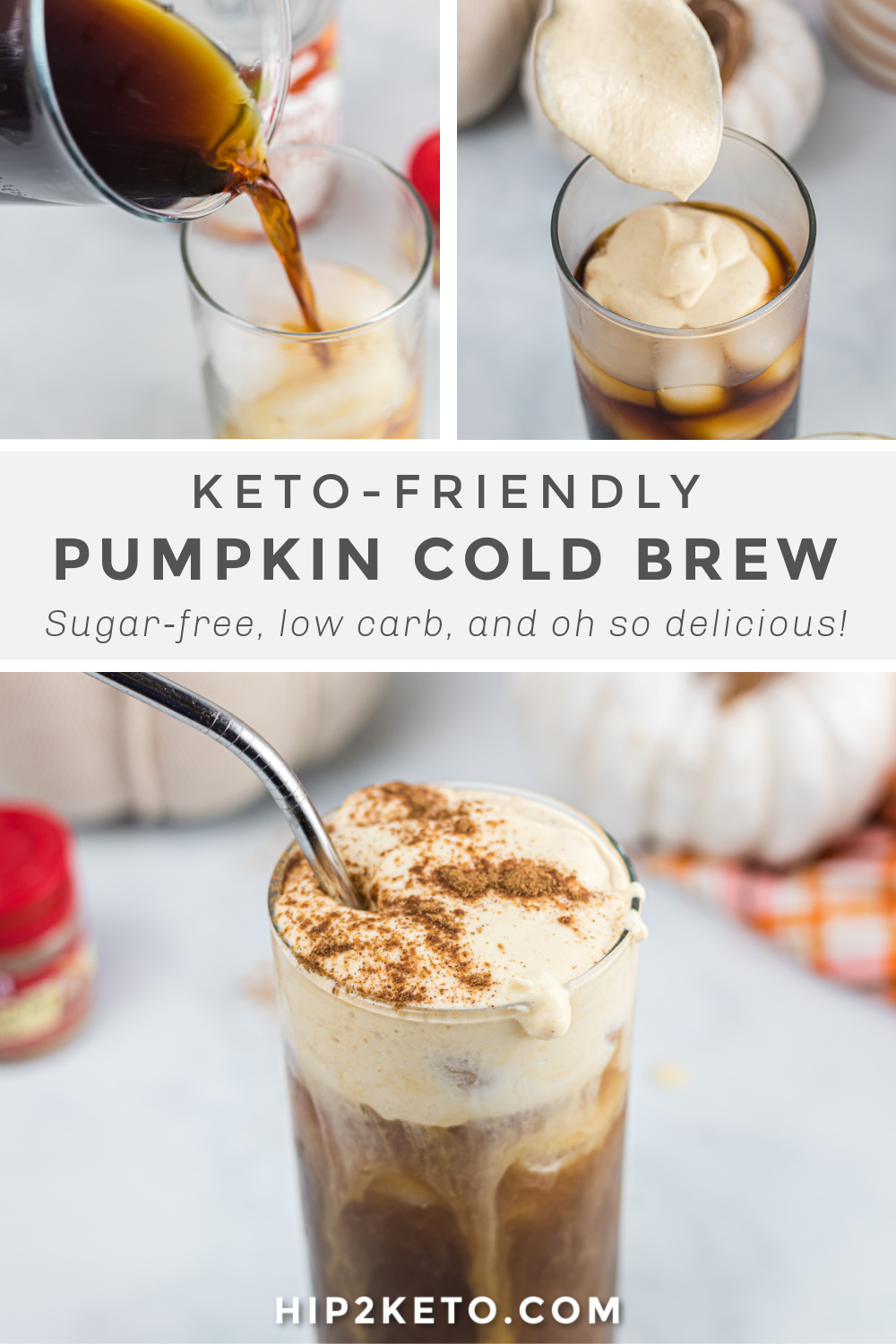 This keto pumpkin cream cold brew recipe is a cool way to enjoy a fall beverage!