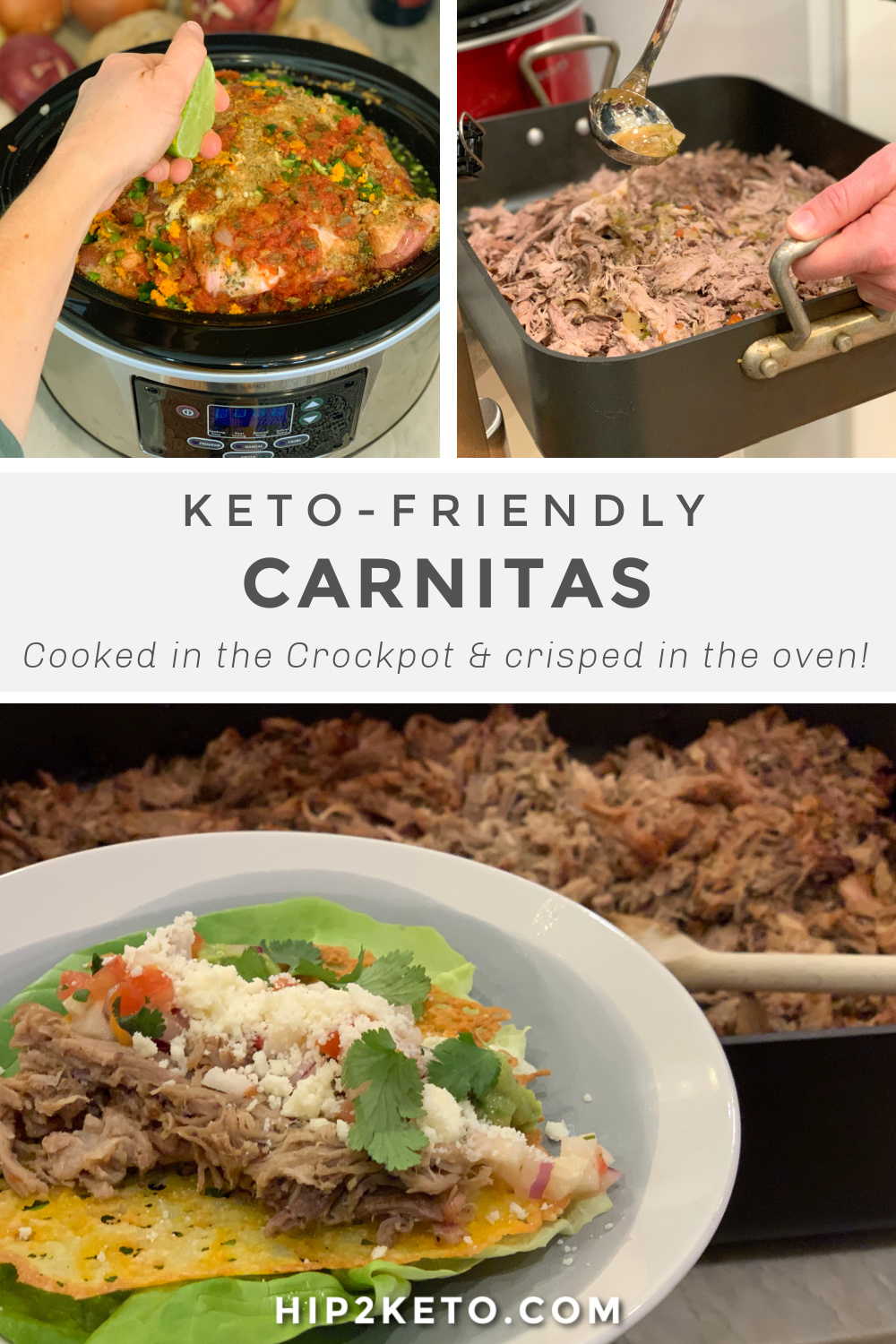 - Planning on having a party? Serve these slow cooker keto pork carnitas with our keto guacamole and keto jicama pico de gallo. Yum!